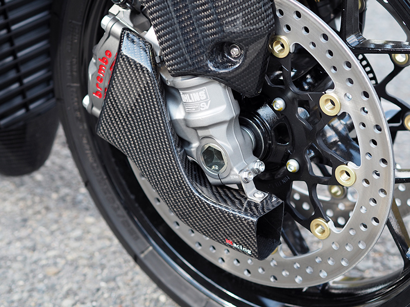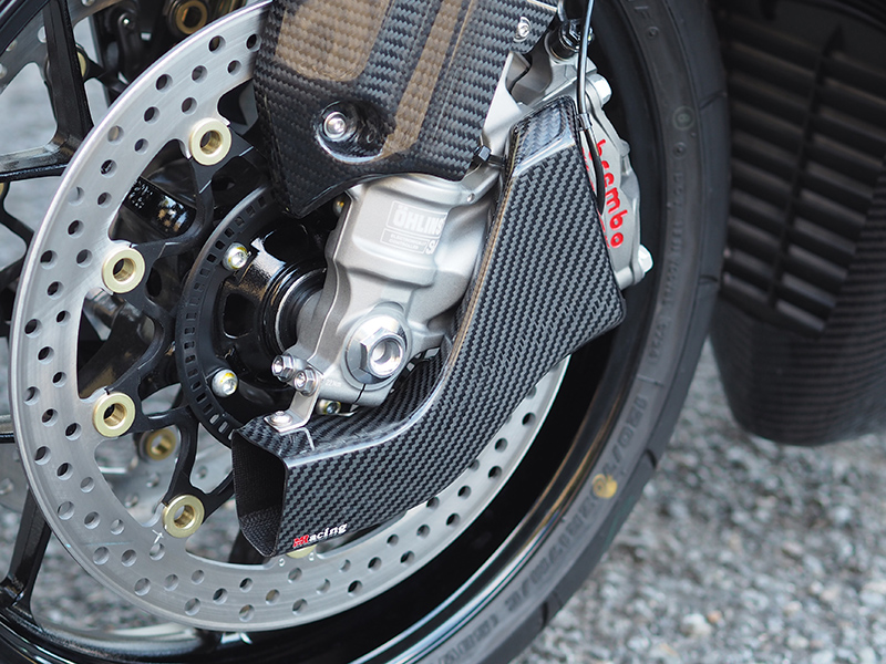 フォークガードを一体形状にすることにより、飛び石などからフロントフォークのインナーチューブを守ります。