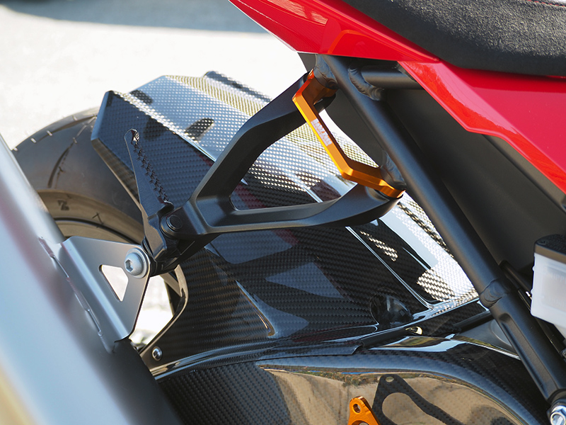 STDより大幅延長してリア周りの整流性と泥ハネの抑止効果を向上。
