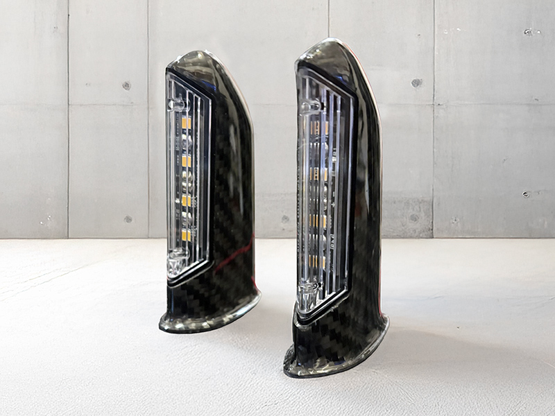 HOME > 新製品情報 > さらに進化した、新型LEDカーボンウインカー登場。 2025年10月10日 さらに進化した、新型LEDカーボンウインカーが登場しました。以前のカーボンに比べ、スリムでスタイリッシュデザイン。4灯LEDにより、後方への認識もアップしています。>> 新型LEDカーボンウインカーの詳細はこちら