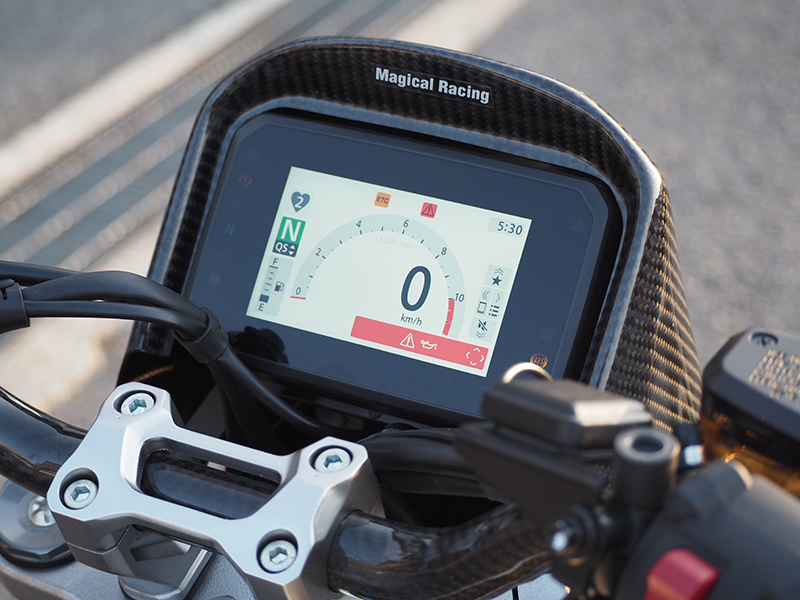 中空モノコック構造により、コーナリング時のグリップを高めて下半身ホールドを容易にする。ブレーキ時もフォームが安定。