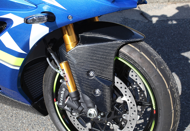フォークガードを一体形状にすることにより、飛び石などからフロントフォークを守ります。